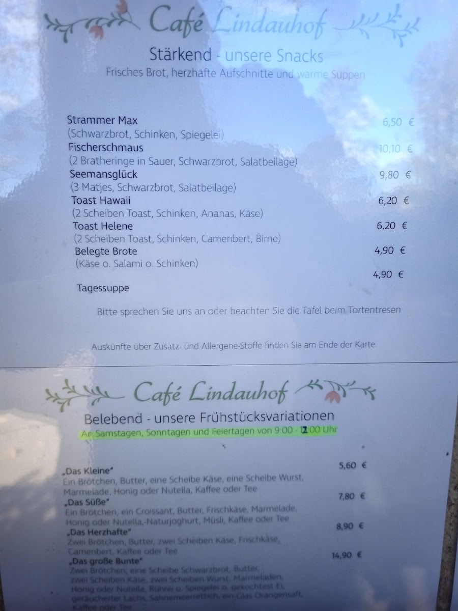 Café Lindauhof - Landarzthaus Menu